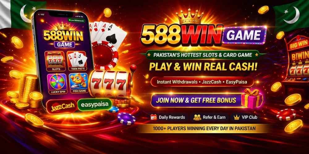 588WIN Game is a mobile app where users play slots and card games to earn money. It combines gaming and earning in one place. So, players enjoy fun games while they try to win rewards. The app mainly targets users in Pakistan. That is why it supports local payment methods like JazzCash and EasyPaisa. In addition, it offers bonuses to new users, which makes it easy to start. You simply register with your mobile number. Then, you deposit a small amount and start playing games. After that, you can win coins and convert them into real cash. Although it looks simple, you should always play carefully. Because, like all games, it includes risk as well as reward.
